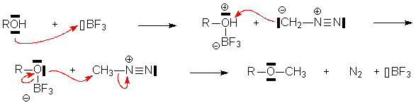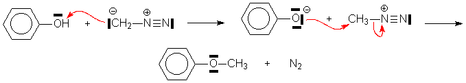 Si lalcool est suffisamment acide (phénols), il réagira spontanément avec le diazométhane :