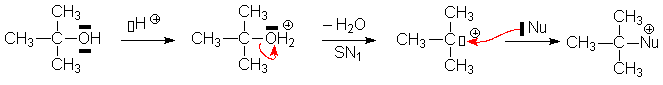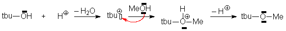 Cependant, le mélange de tertiobutanol, de méthanol et dacide sulfurique conduit, par SN1, à léther mixte de méthyle et de tertiobutyle :