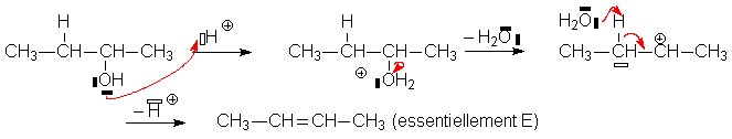 En conséquence, le mécanisme sera essentiellement E1, avec passage intermédiaire par un carbocation. La vitesse délimination sera donc dautant plus grande que le carbone portant la fonction alcool sera plus substitué par des groupements donneurs :