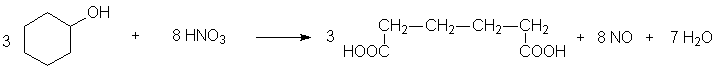 Lacide nitrique concentré et chaud permet de rompre par déshydratation préalable les liaisons carbone-carbone, et peut donc oxyder en acides carboxyliques, les alcools secondaires et tertiaires, avec destruction de la chaîne carbonée de départ. Le permanganate de potassium en milieu fortement basique permet la même opération : synthèse de lacide adipique :