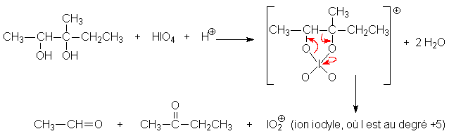 Lacide periodique oxyde les diols vicinaux en dérivés carbonylés, avec rupture de la liaison carbone carbone liant les deux groupements fonctionnels :
