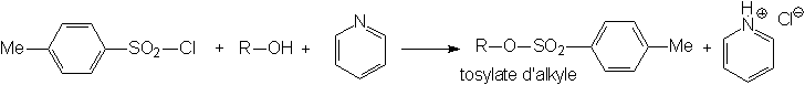 (chlorure de tosyle). Il réagissent avec les alcools en présence d'un solvant