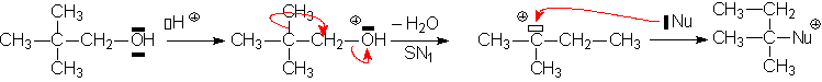 Si le substrat primaire peut subir des réactions de réarrangement pour donner des carbocations stables, une pseudo SN1 a lieu (la vitesse est dordre 1) :