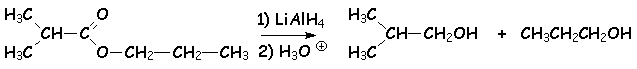Les esters sont très facilement réduits en deux alcoolates par LiAlH4. L’hydrolyse conduit à deux alcools :