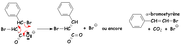 Les deux groupes partant (CO2 et Br–) doivent être en anti pour que l'élimination se fasse bien (réaction stéréospécifique)