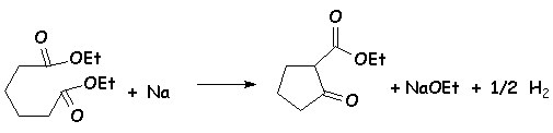 On utilise un diester, traité par une base forte : NaOEt, NaH, [(CH3)2CH]2NNa (diisopropylamidure de sodium), Na lui-même ( il y a dégagement d’hydrogène) :