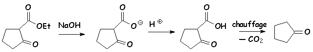 Les 3 réactions de cyclisation qui vont suivre, sont des réactions de type Claisen, suivies de décarboxylation.