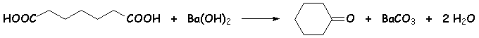 Le chauffage d’un diacide carboxylique avec de l’hydroxyde de baryum (baryte) conduit au même résultat que précédemment. Le moteur de la réaction semble être la formation de carbonate d baryum très stable (cf son insolubilité dans l’eau) :