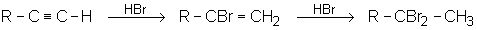 L’alcyne peut additionner deux moles d’halogènure d’hydrogène
