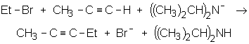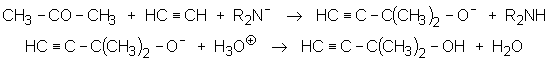 En présence de méthylate de sodium MeONa , les alcynes vrais sont eux transformés en alcynes disubstitués. Ces deux réactions demandent une durée très longue (plusieurs heures, voire plusieurs jours).