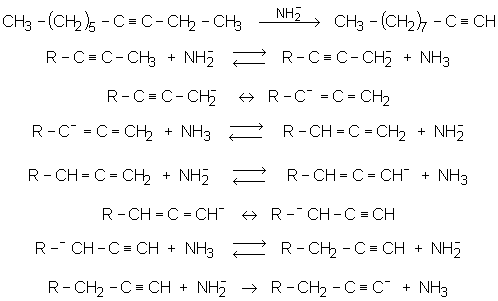 Traités par NaNH2 , les alcynes disubstitués se transforment en alcynes vrais :