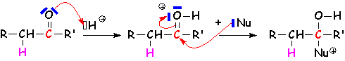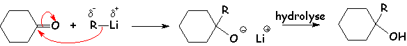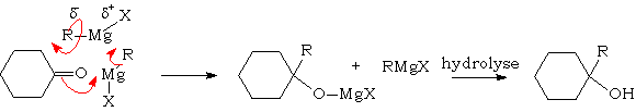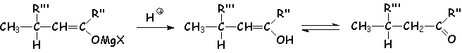 Cette addition est généralement suivie d'une hydrolyse en milieu acide, ce qui permet de protoner L'ion O -.