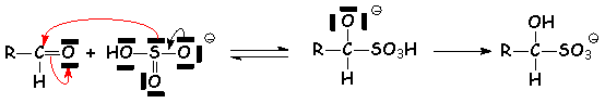 L'ion hydrogénosulfite, possédant un doublet sur le carbone, s 'additionne aux aldéhydes, plus réactifs et moins encombrés, pour donner un ion a-hydroxysulfonate :