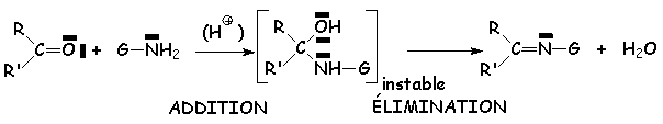 Il s 'agit de la fixation d'une structure nucléophile sur le carbone, avec fixation de L'électrophile associé (souvent H+) sur L'oxygène. Deux mécanismes essentiels :