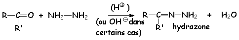 La réaction des dérivés carbonylés avec L'hydrazine donne des dérivés cristallisés caractéristiques appelés hydrazones :