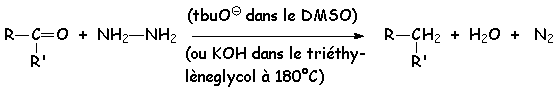 Cas particulier du traitement d'un dérivé carbonylé en milieu fortement basique en présence d'un donneur de protons à très haute température : réaction de WOLFF-KISCHNER