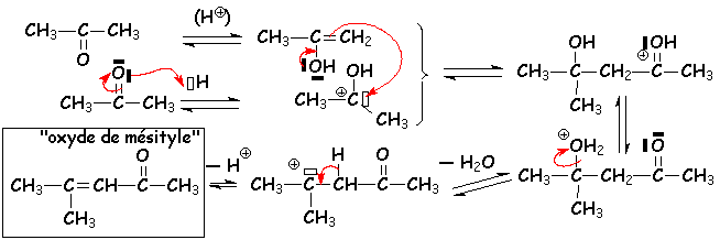 En milieu acide, c 'est la stabilité de L'énol qui régit L'orientation de la réaction. Dans le cas précédent (on va jusqu 'à la crotonisation), on obtient :