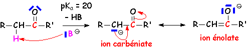 concentration suffisante en ion énolate / carbéniate, car cet énolate va faire