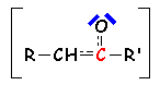 Régiosélectivité de la formation de L'énolate : En effet, dans le cas d'une cétone dissymétrique, quel est L'énolate majoritaire ? Dans le cas d'une réaction où l'équilibre n'est pas atteint(contrôle cinétique en présence de bases faibles telles que OH- ou EtO-)(voir l'aldolisation), on obtient majoritairement le carbéniate le plus stable, c.a.d. le moins substitué par des groupements donneurs :