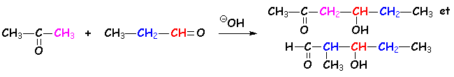 En milieu basique, c 'est le carbéniate le plus stable (voir 4.1.1.) qui se forme. L'aldolisation se fera en fonction de ce résultat :