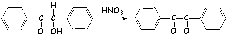 La benzoïne est facilement oxydée par L'acide nitrique concentré en benzile :