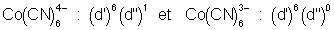 Tous deux sont octaédriques et à champ fort. Le remplissage est le suivant : (7 électrons de valence pour Co+II et 6 électrons de valence pour Co+III)