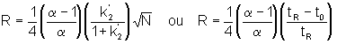 En supposant les largeurs des pics à la base du même ordre, on démontre que la résolution R peut être exprimée par la relation: