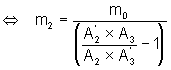 En combinant (3) et (4), nous obtenons une relation où seul m2 est inconnu: