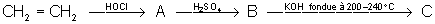 16. Un composé « C », qui est un anesthésique 7 fois plus puissant que l’éther, est préparé‚ à partir de l’éthylène de la manière suivante :