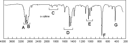 de la substitution (voir tableau) vers 650 - 900 cm–1, et les