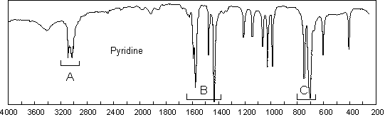 bandes de squelette (B) pour la pyridine, moins pour les cycles à 5