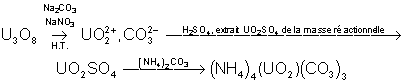 d’ammonium et d’uranyle qui précipite. Il est séché et décomposé à la chaleur en