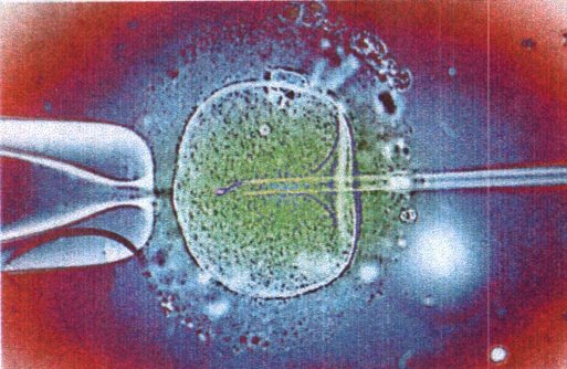 d'un ovocyte, sous le microscope à l'aide d'une micro-aiguille.