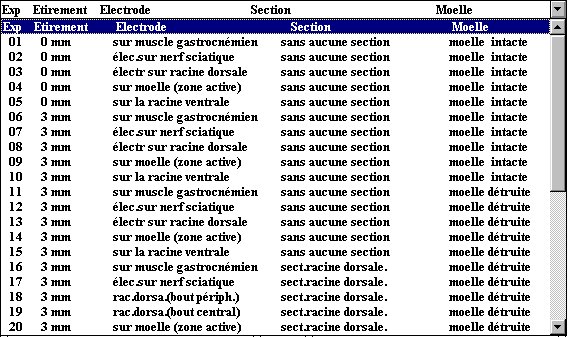 nombre de postes Ex.A.O. disponibles pour l'enregistrement du réflexe