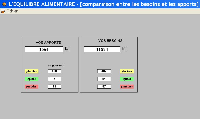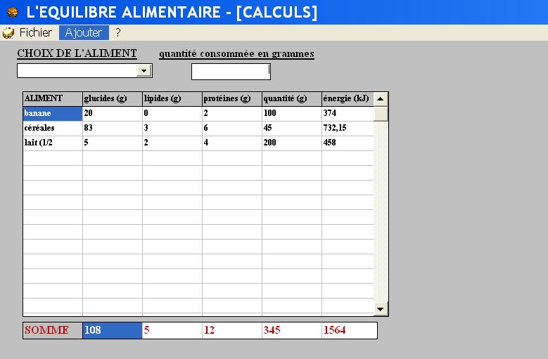 à l'aide d'un logiciel pour relier apports alimentaires