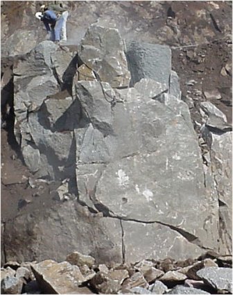 plus bas des gros blocs dont les angles s'arrondissent sont séparés