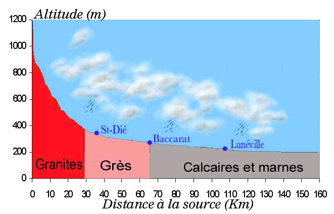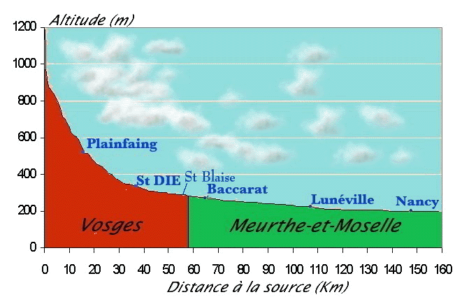 Dié, Raon l'Etape, Baccarat puis Nancy. Son cours est